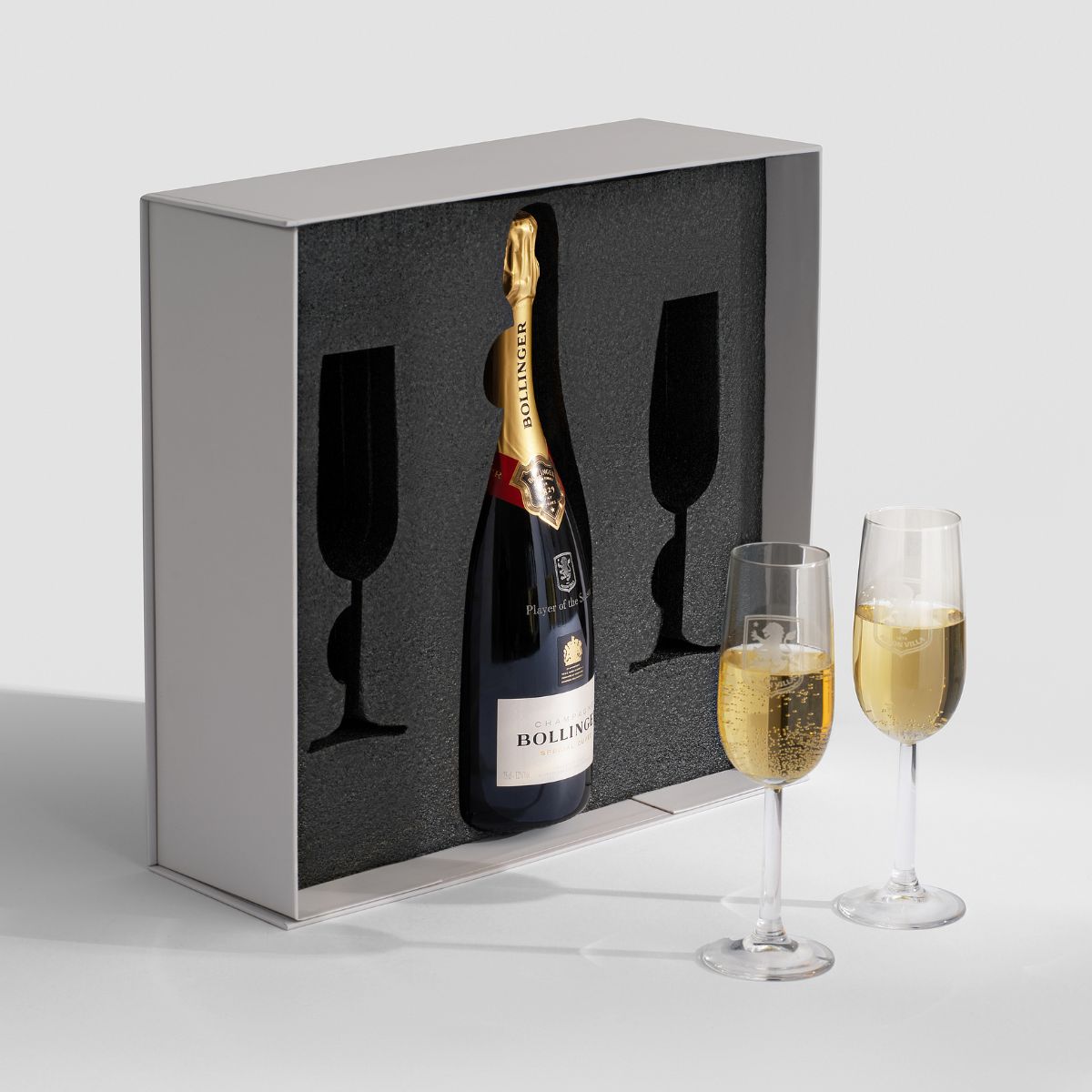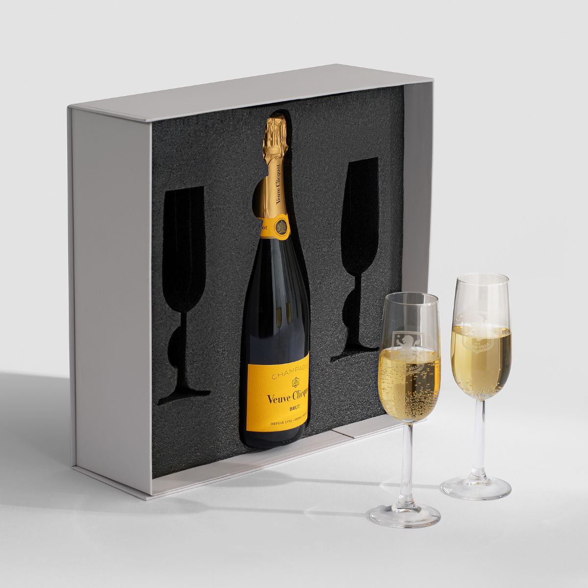 Branded Corporate Champagne Gift Hamper With Personalised Crystal Flutes