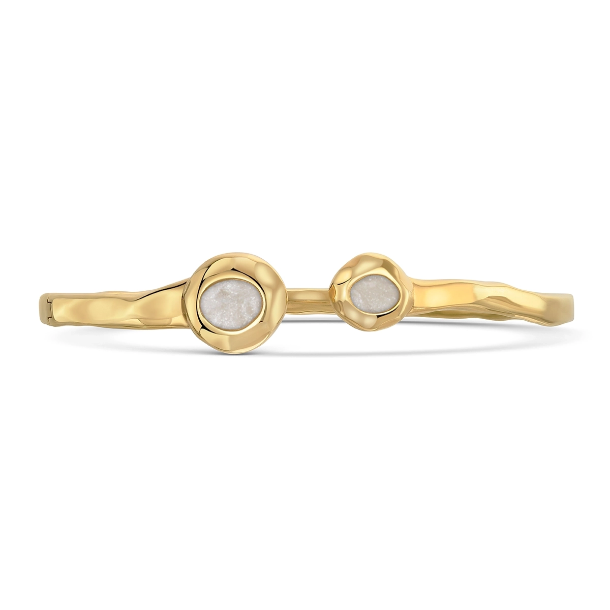 Crafted in 925 sterling silver with 18k gold plating, this memorial bangle offers a soft, natural aesthetic with its flowing, organic form and hammered-style finish.