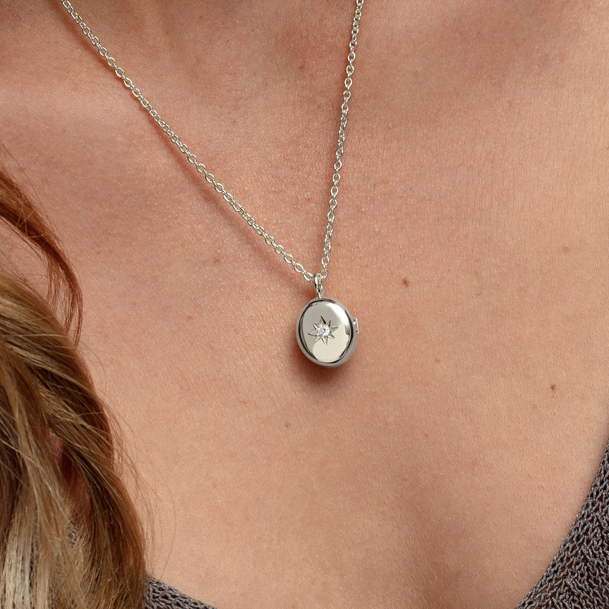 Celebrate love and memory with the Large Crystal Set Oval Urn Necklace. Crafted from solid 925 sterling silver this stunning oval-shaped urn features a clear crystal set in a delicate starburst design and a high polish finish. The heart urn opens via a secure screw mechanism, offering a discreet compartment to hold a small portion of cremation ashes. This keepsake includes a funnel and pin set for easy decanting at home. For an added personal touch, the back of the pendant can be engraved with a short, heartfelt message.