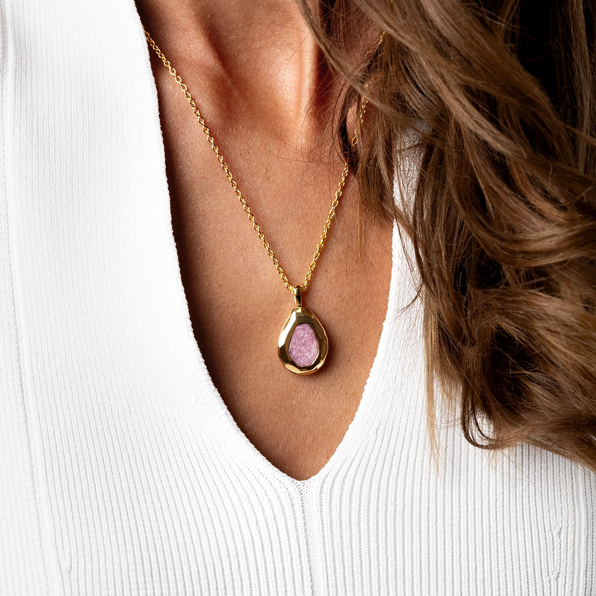 Large Organic Teardrop Ashes Resin Necklace – Gold