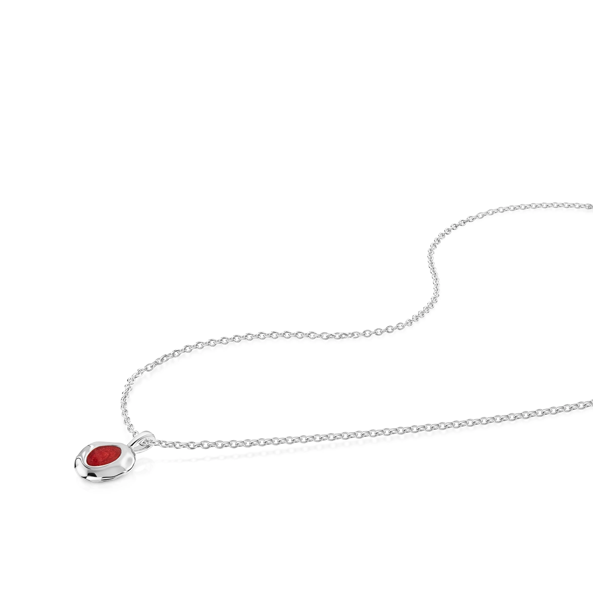 The pendant is suspended from a sterling silver trace chain, adjustable to 16–18 inches, or available with an upgraded length of 20–22–24 inches for the perfect fit.