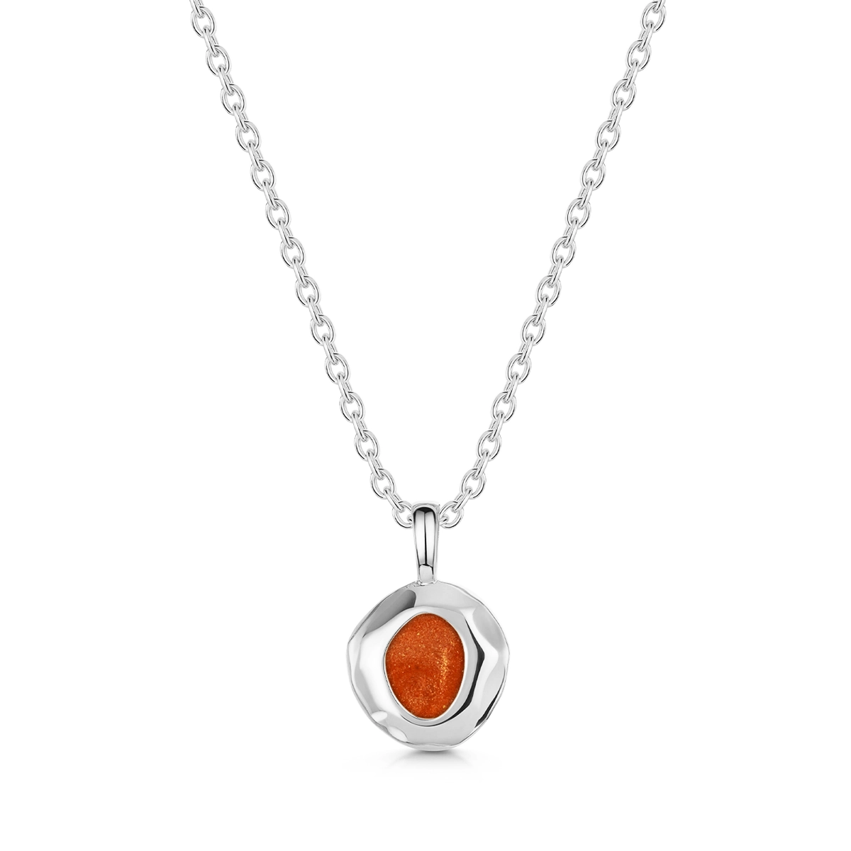 Organic Round Ashes Resin Necklace – Silver