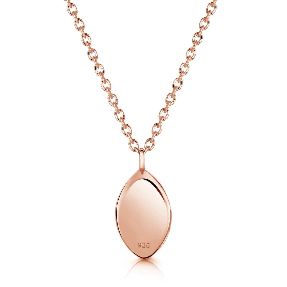 Made from 925 sterling silver and plated in 18k rose gold, the pendant opens via a hidden screw at the base to hold a small amount of cremation ashes securely inside.