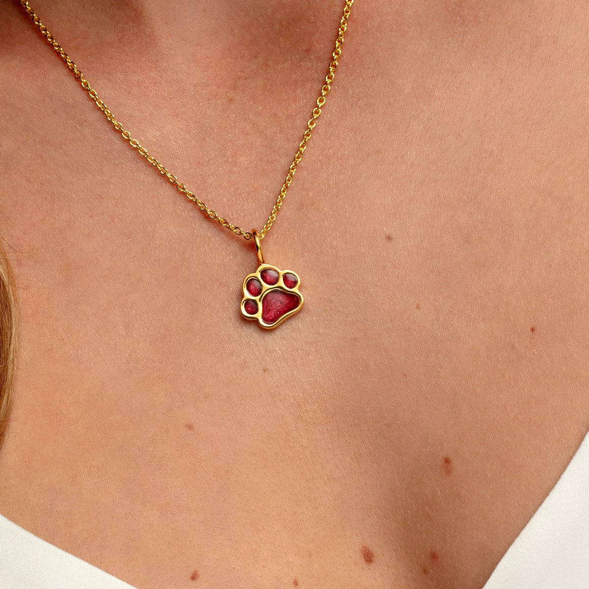 Crafted from 925 sterling silver plated with 18K gold this commemorative piece features a paw shaped pendant with our signature loop bail.