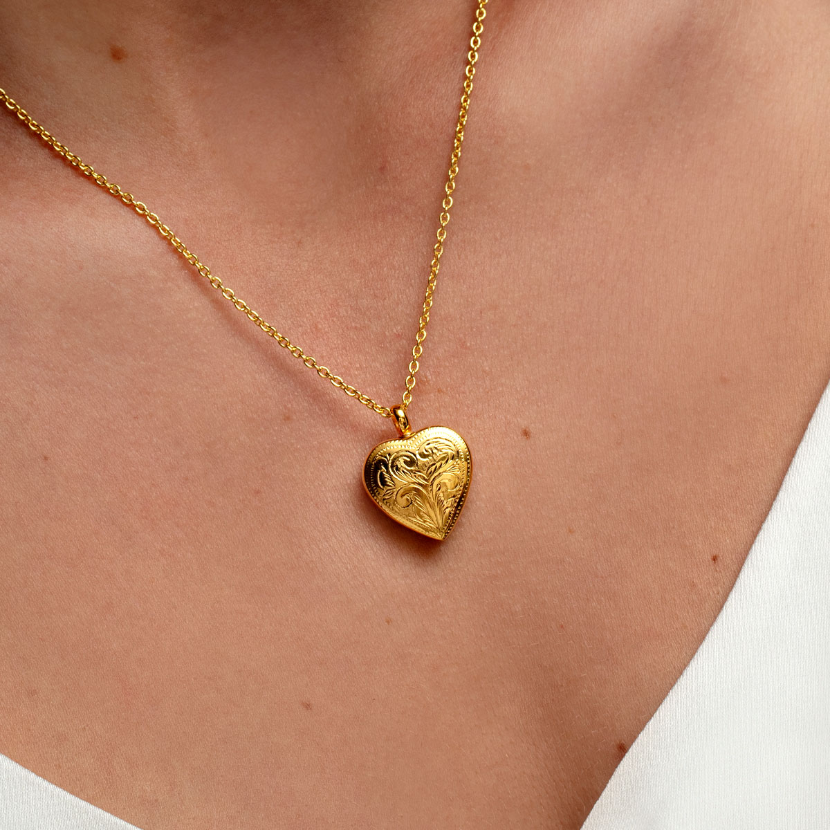 Crafted from 925 sterling silver and plated with 18K gold, this LOVELOX pendant and chain features a delicate scroll design etched into the heart-shaped urn, serving as a timeless tribute to those held dear. Discreetly opening with a secure screw mechanism, it holds a small portion of cremation ashes inside. Complete with a convenient funnel and poker, insertion of precious ashes is an easy process.