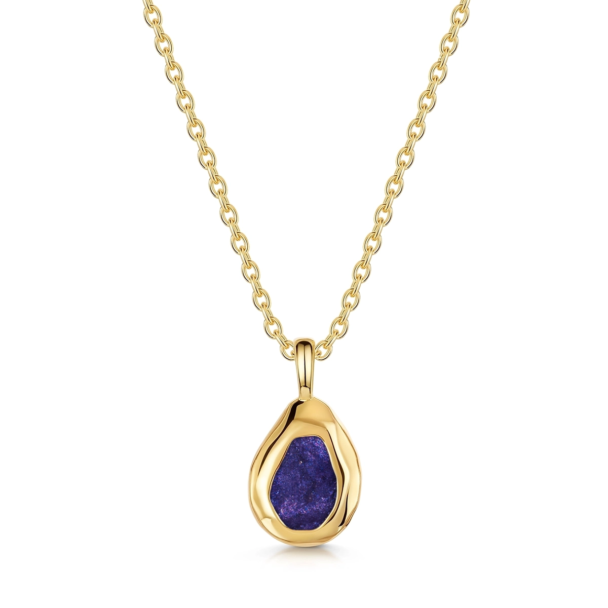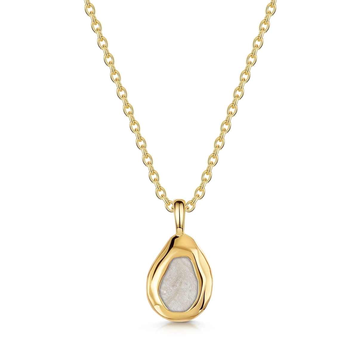 Small Organic Teardrop Ashes Resin Necklace – Gold