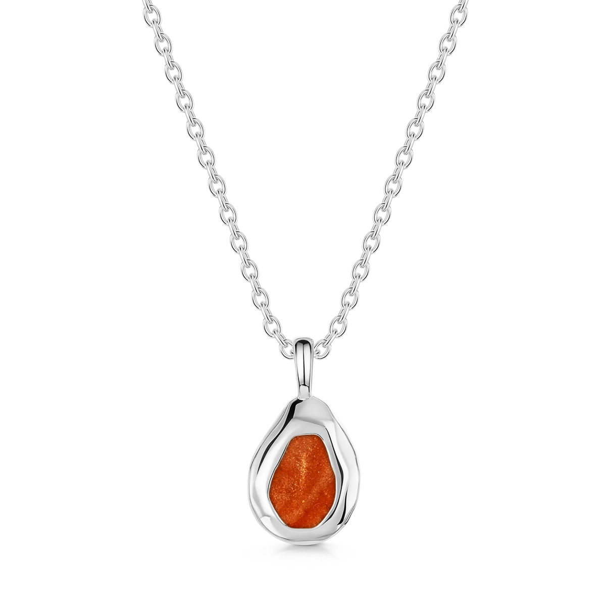 Small Organic Teardrop Ashes Resin Necklace – Silver