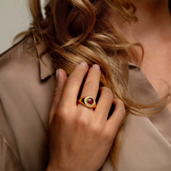 Crystal Signet Ashes Resin Ring – Gold