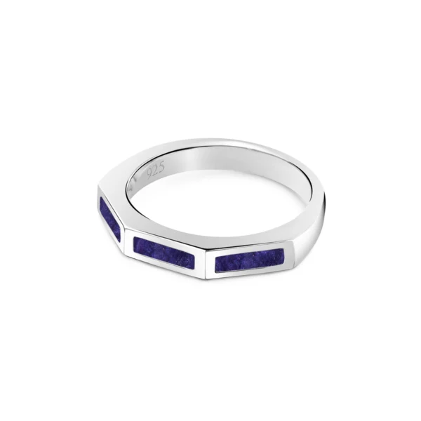 Ribbed Band with Rectangular Ashes Resin Ring – Silver
