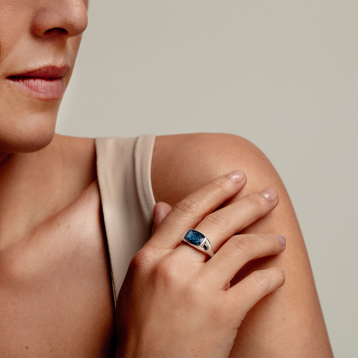 Rectangular Signet Ashes Resin Ring – Silver