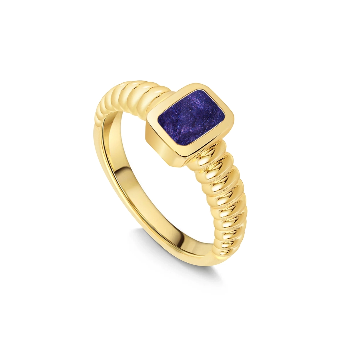 Ribbed Band with Rectangular Ashes Resin Ring – Gold
