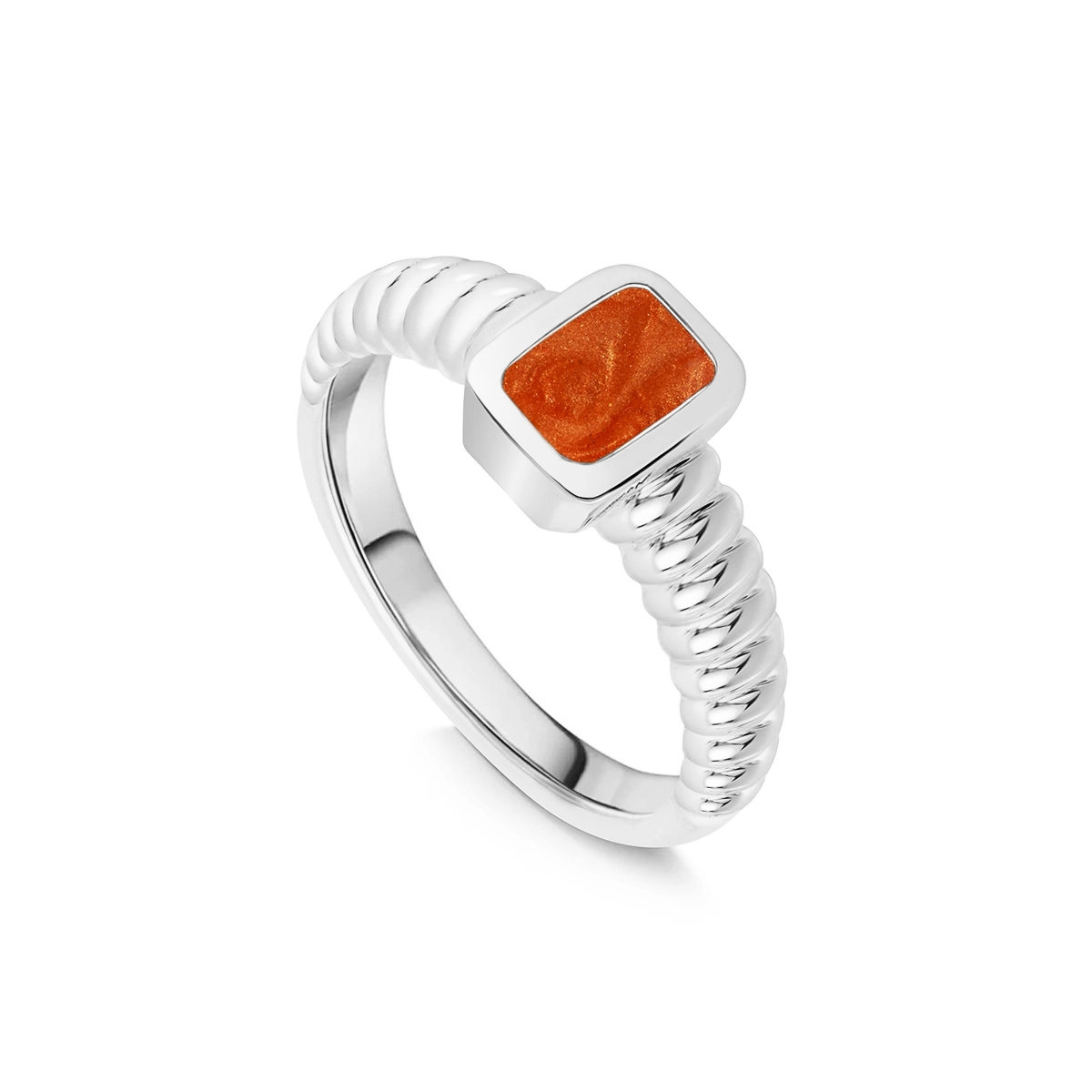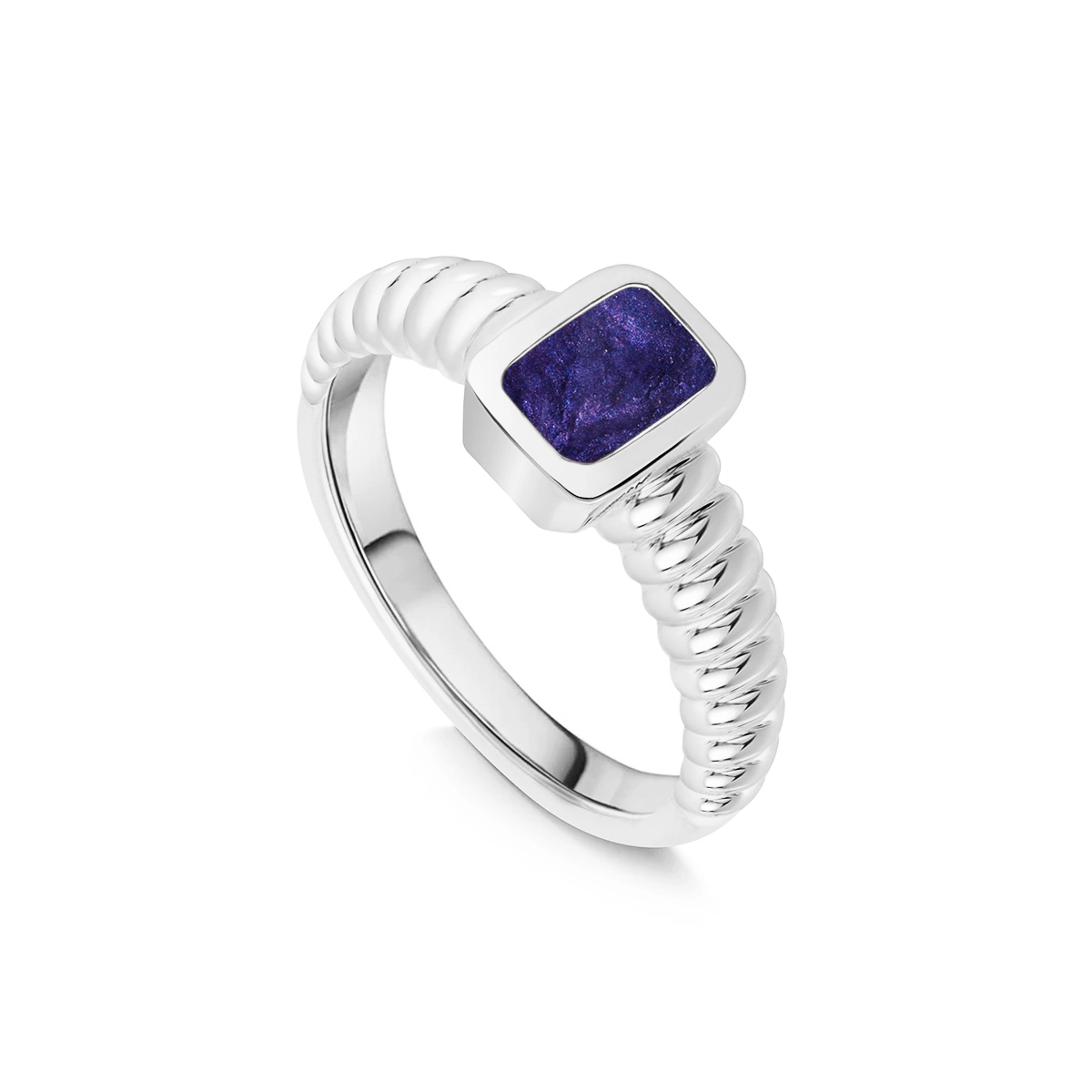 Ribbed Band with Rectangular Ashes Resin Ring – Silver