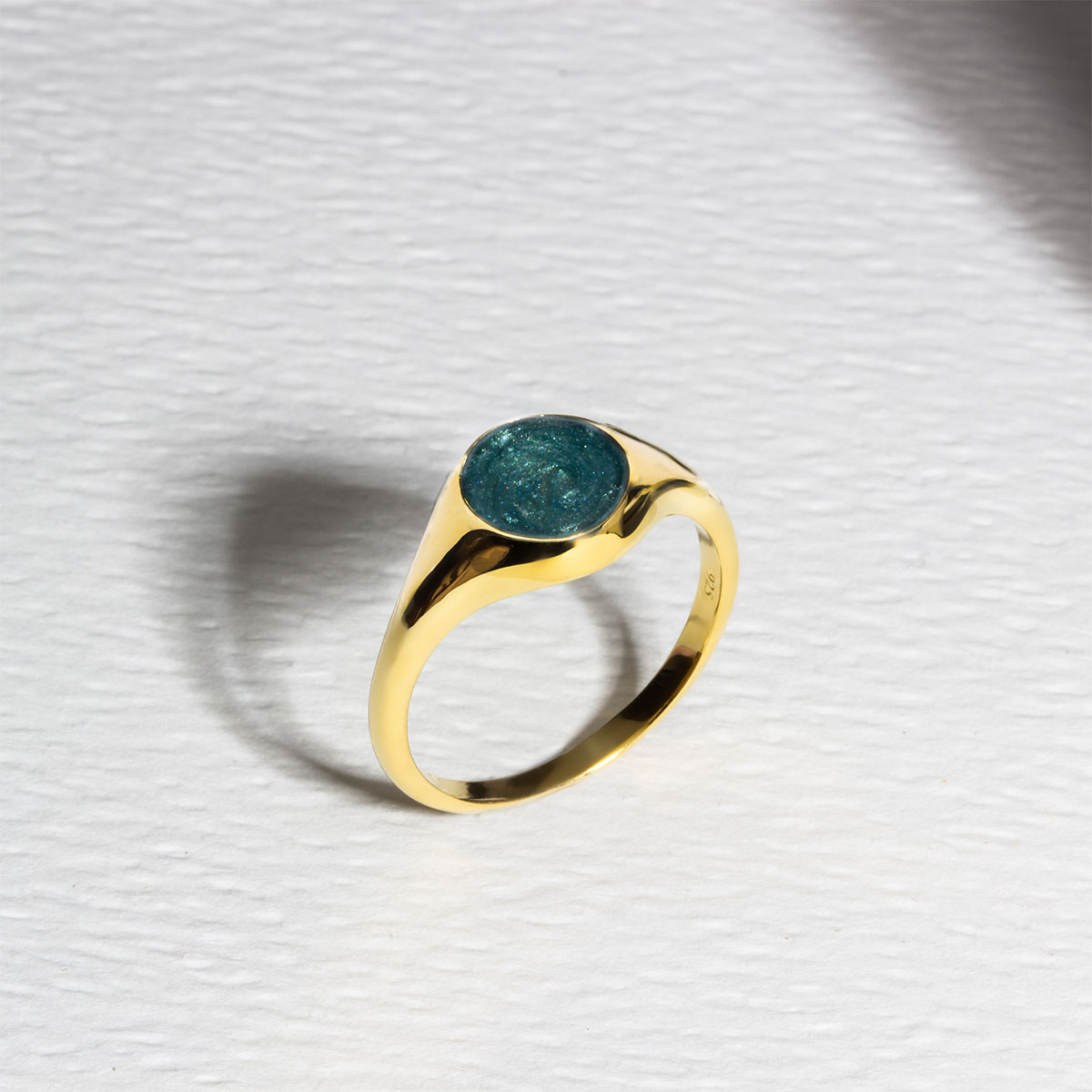 Home > Products > Ashes Jewellery > Ashes Rings > Round Signet Ashes Resin Ring – Gold