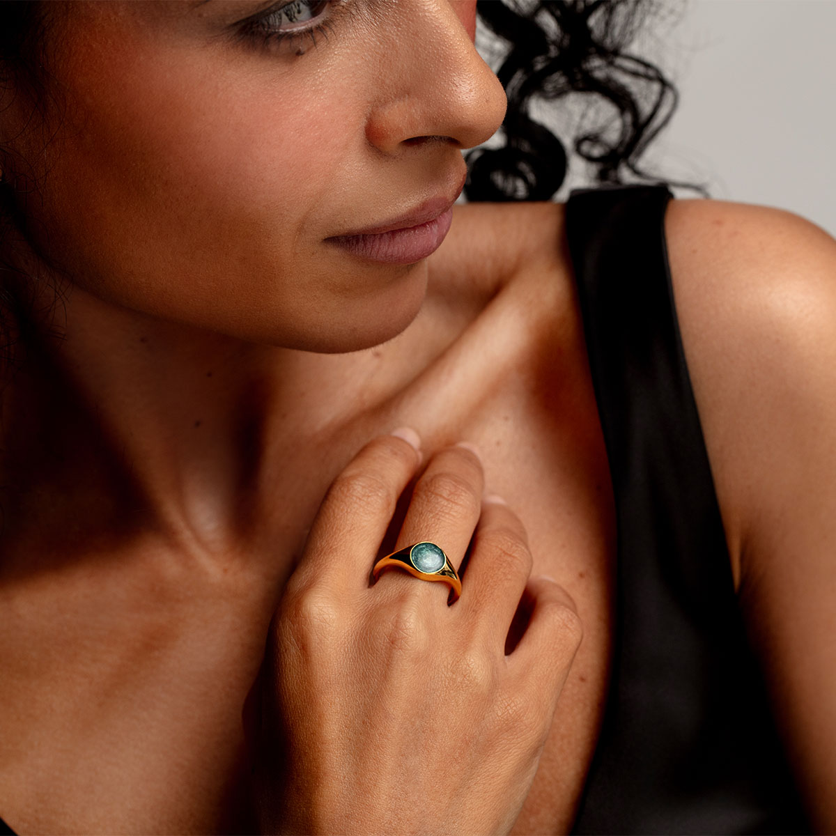 Round Signet Ashes Resin Ring – Gold