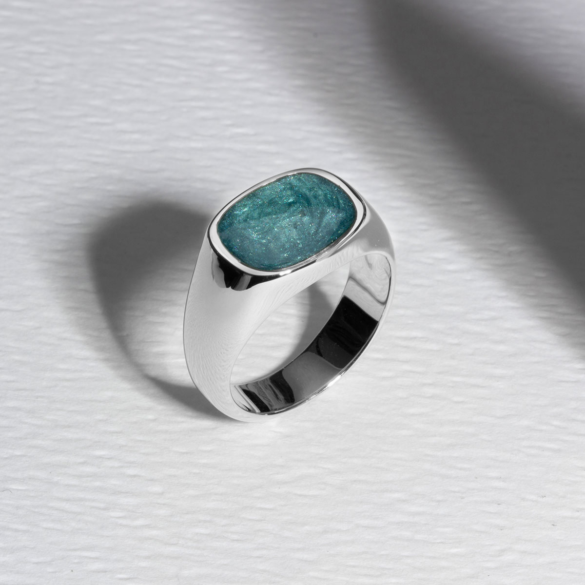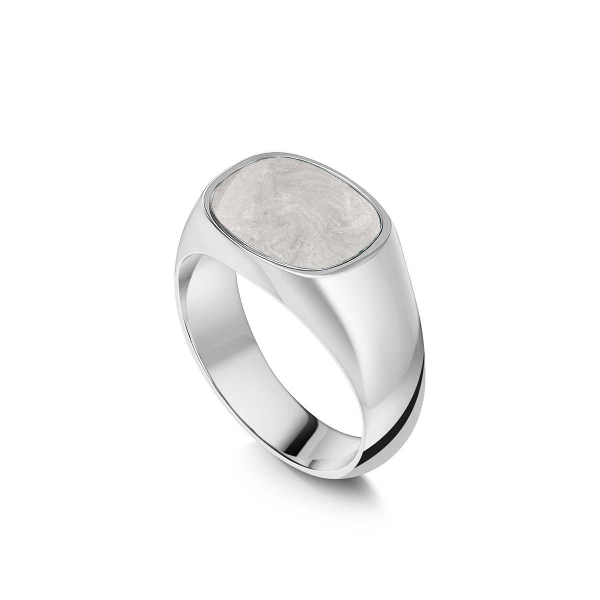 Rounded Rectangular Signet Ashes Resin Ring – Silver