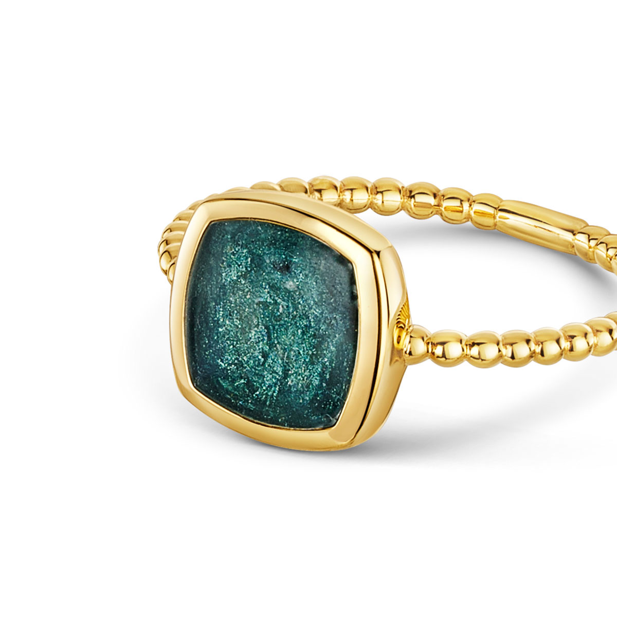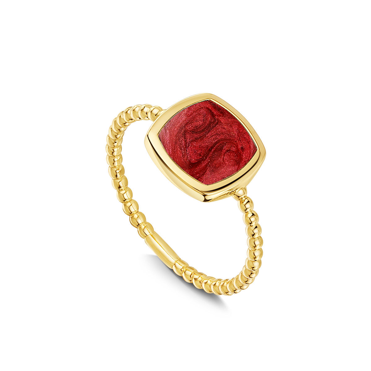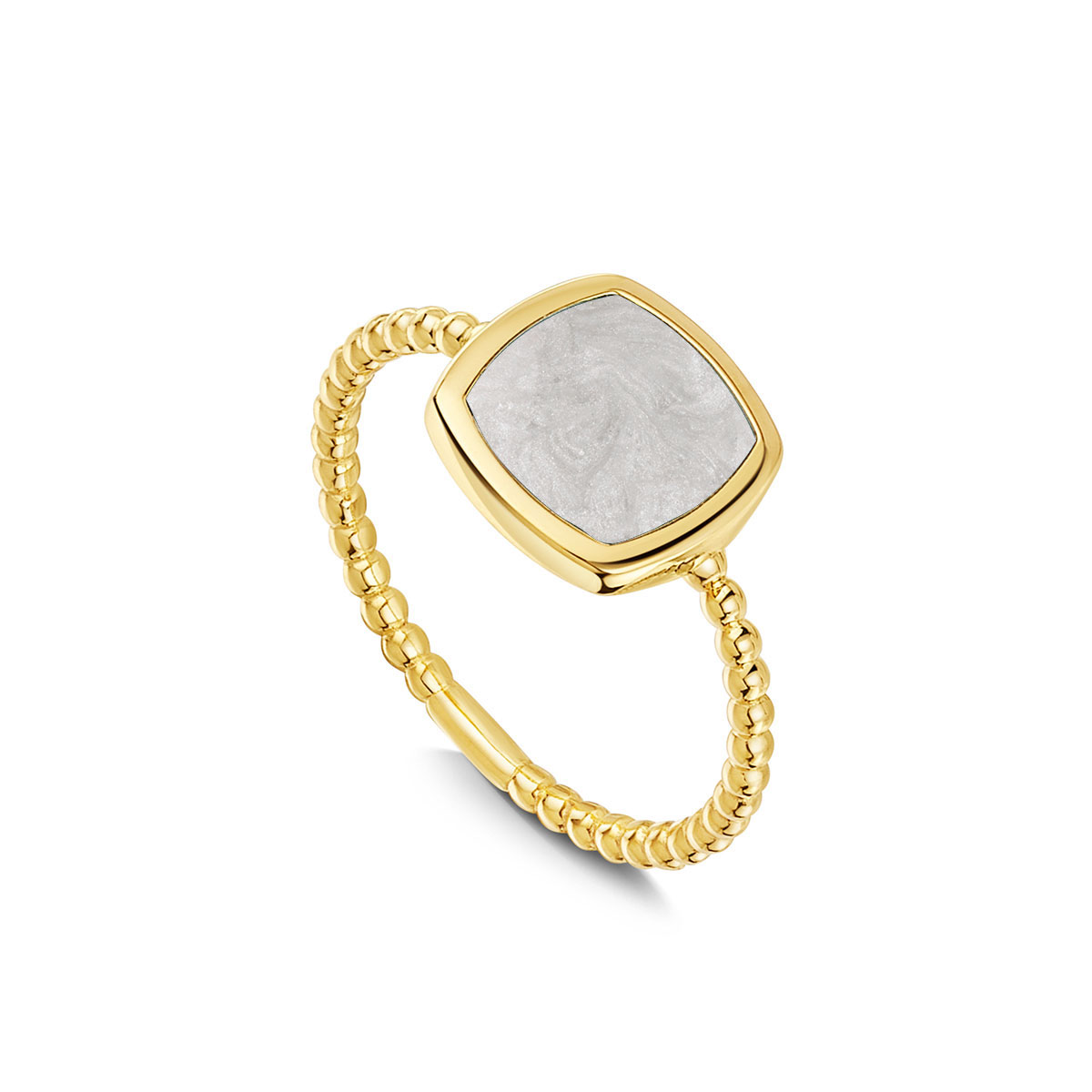 Rounded Square Ashes Resin Ring With Beaded Band – Gold