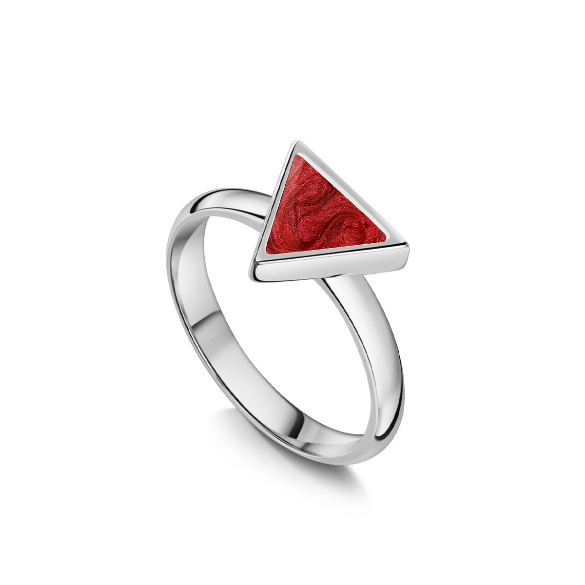 Crafted from 925 sterling silver this contemporary ring from LOVELOX features a triangular centrepiece and a plain band. The centrepiece is made from specialised resin infused with coloured pigment and a small blend of your loved ones ashes resulting in a stunning celestial look.