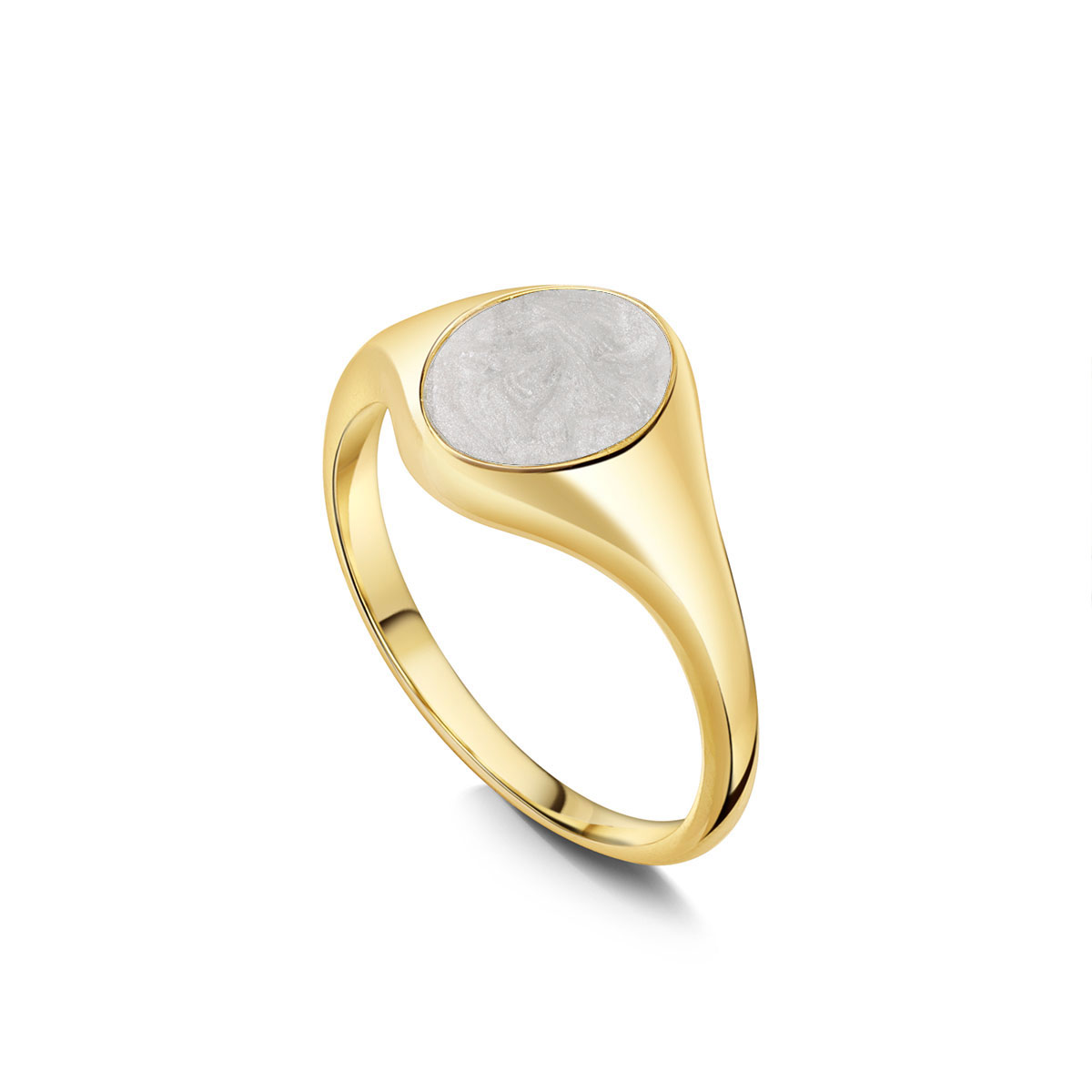 Crafted from 925 sterling silver this traditional signet ring from LOVELOX features an oval centrepiece. The centrepiece is made from specialised resin infused with coloured pigment and a small blend of your loved ones ashes resulting in a stunning celestial look.
