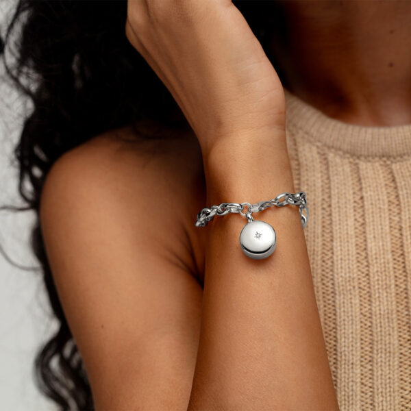 Diamond Drum Urn Bracelet with Links Chain – Silver
