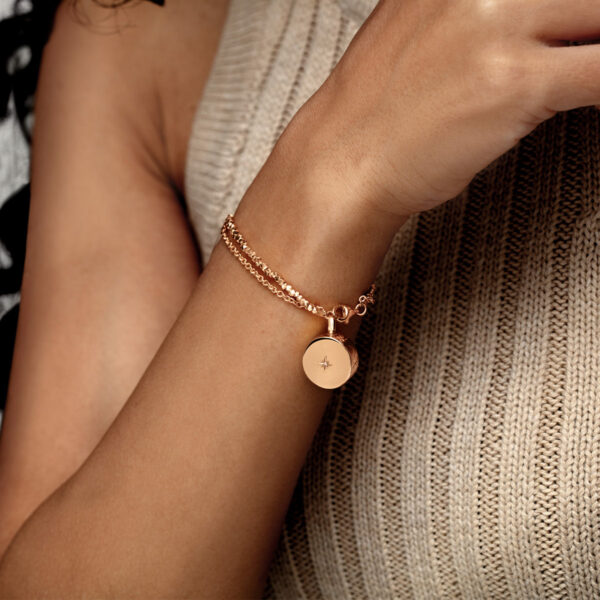 Diamond Drum Urn Bracelet with Nugget Chain – Rose Gold