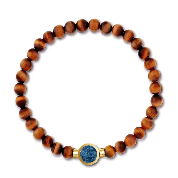 Men’s Small Beaded Tiger’s Eye Ashes Resin Bracelet – Gold