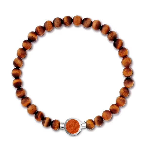 Men’s Small Beaded Tiger’s Eye Ashes Resin Bracelet – Silver
