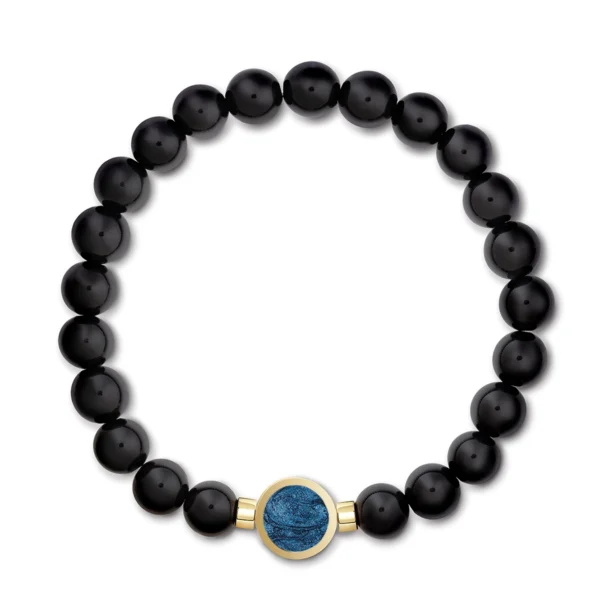 Men’s Large Beaded Black Agate Ashes Resin Bracelet – Gold