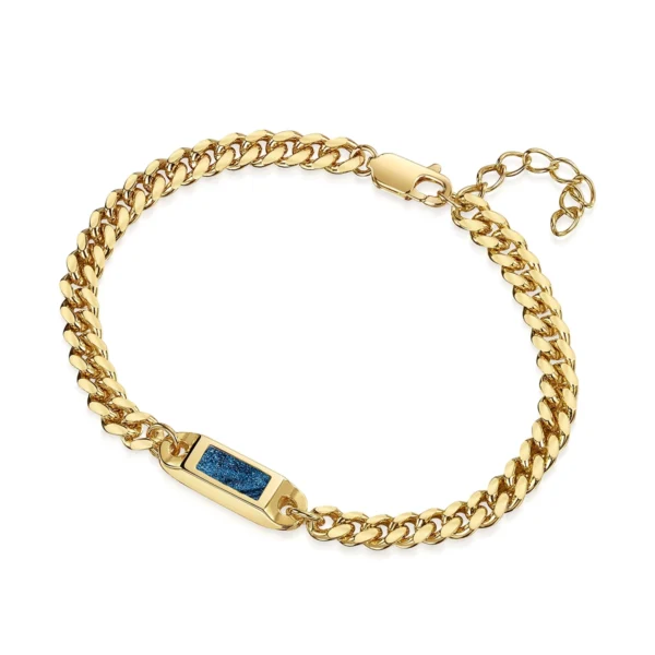 Men’s Small Capsule Ashes Bracelet With Cuban Chain – Gold