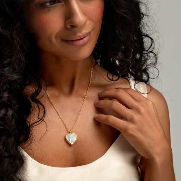 Mother of Pearl Modern Heart Locket – Gold