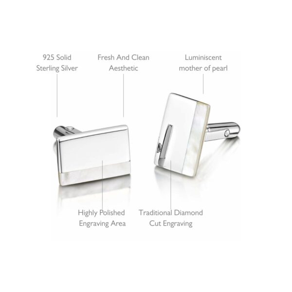 Sterling Silver Oblong Cufflinks – Pearl