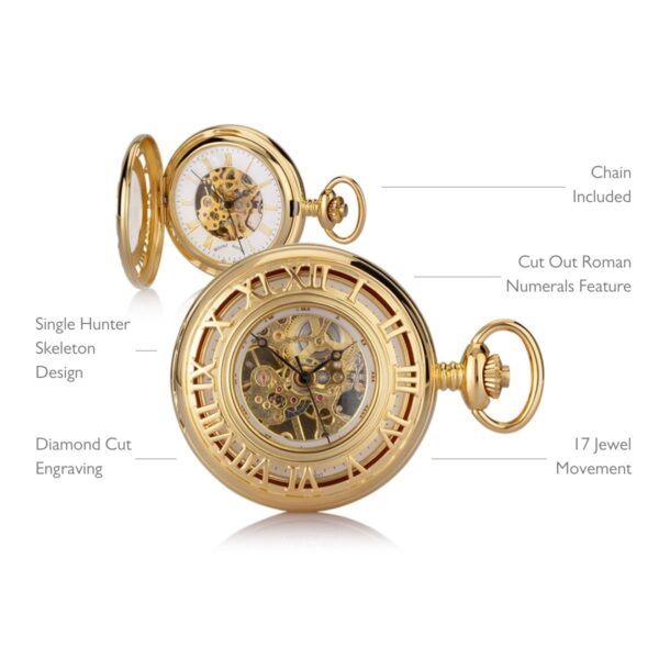 Double Hunter Skeleton Pocket Watch – Gold