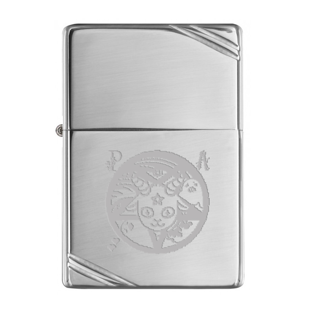 The engraved polished chrome lighter measures 56mm high, 37mm wide and 12.5mm deep, and is presented in a signature Zippo box.