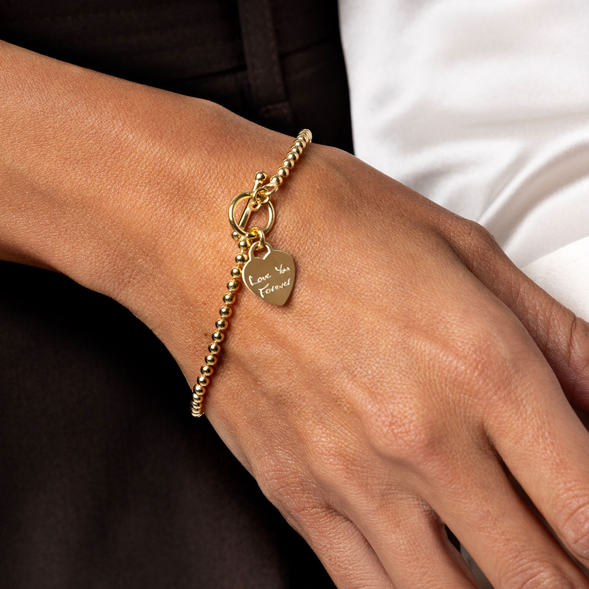 Personalised Bracelet T-Bar Heart on Bead Chain – Gold