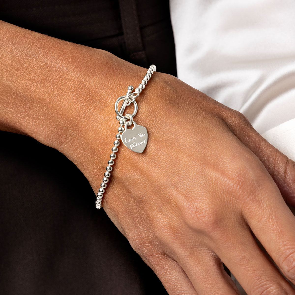 Personalised Bracelet T-Bar Heart on Bead Chain – Silver