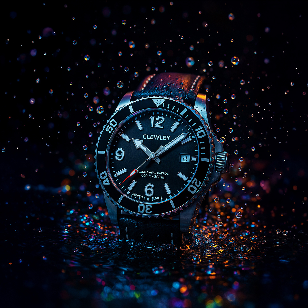 Built to perform where others cannot, the Clewley Submariner boasts a 30 Bar / 300 m / 30 ATM / 1,000-ft water resistance, meeting the standards of true dive-ready instrumentation. A rugged stainless steel case, unidirectional bezel, and secure screw-down crown provide superior robustness, while the streamlined design keeps the watch refined enough for everyday wear.