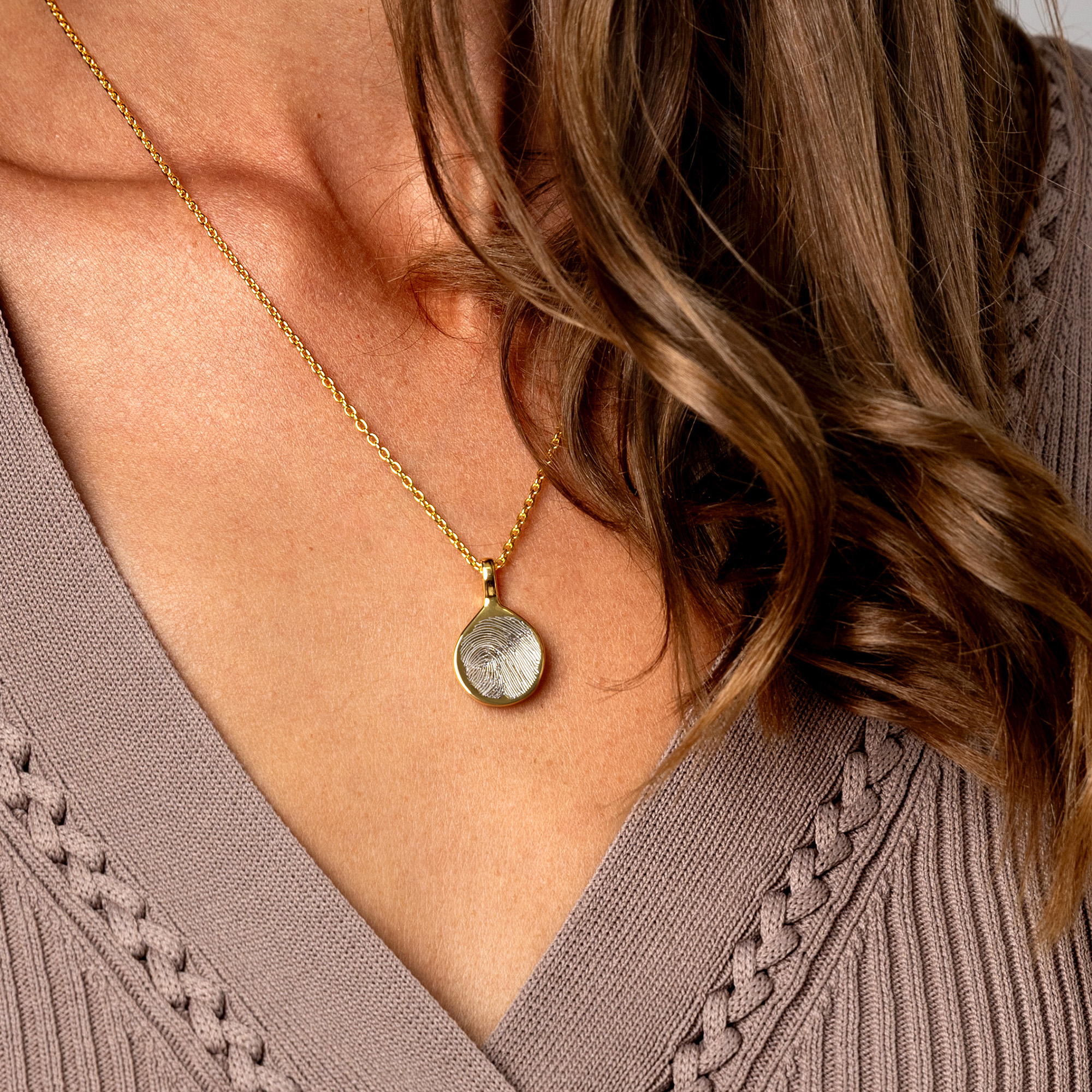 Capture the unique touch of someone you love in this pressed fingerprint style necklace designed for everyday wear. Each pendant is engraved from a real fingerprint, preserving every swirl and line with crisp, lifelike detail.