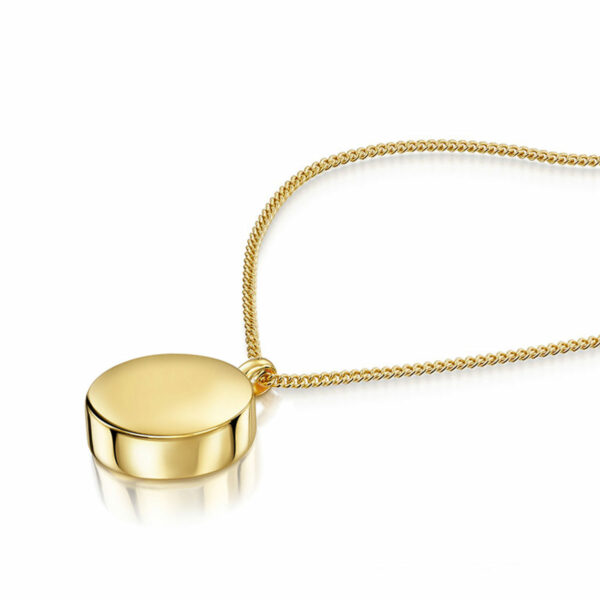 Men’s Round Drum Urn Ashes Necklace – Gold