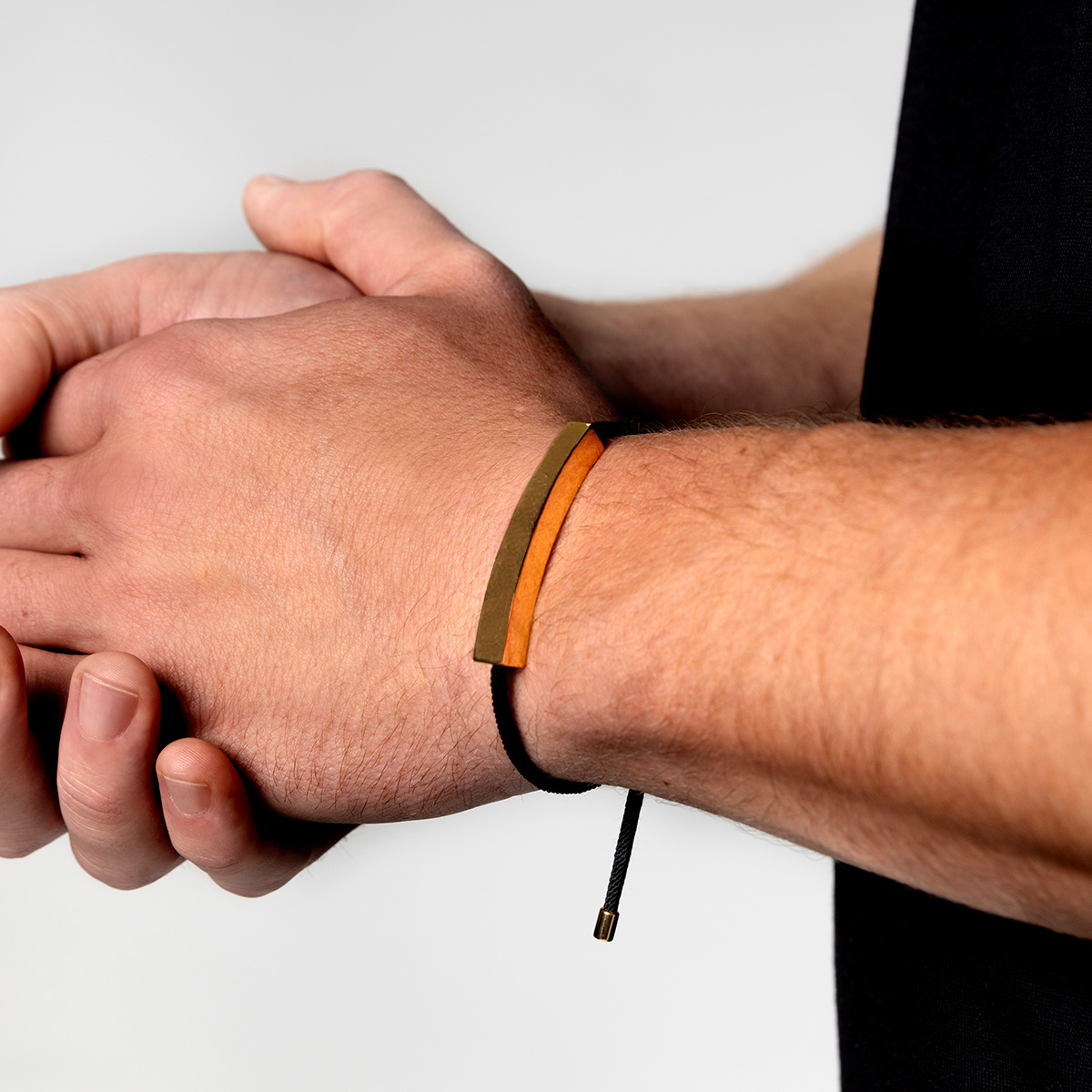 The top of the bar can be engraved – ideal for initials, a name or date. The adjustable sliding clasp ensures a comfortable fit, while gold end caps finish the piece with a clean, modern look.