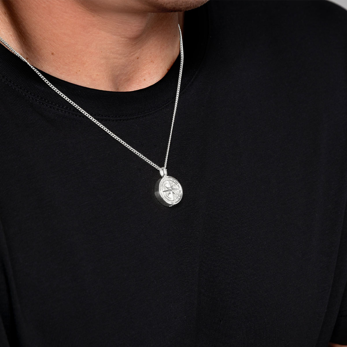 Home > Products > Men's Ashes Jewellery > Men’s Compass Urn Necklace – Silver
