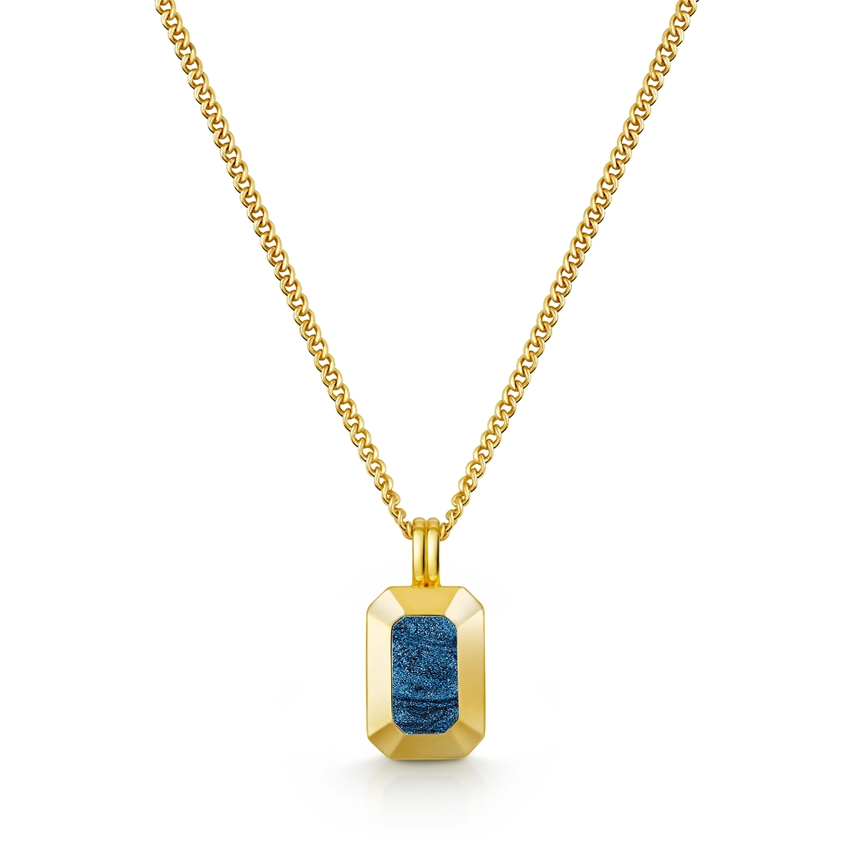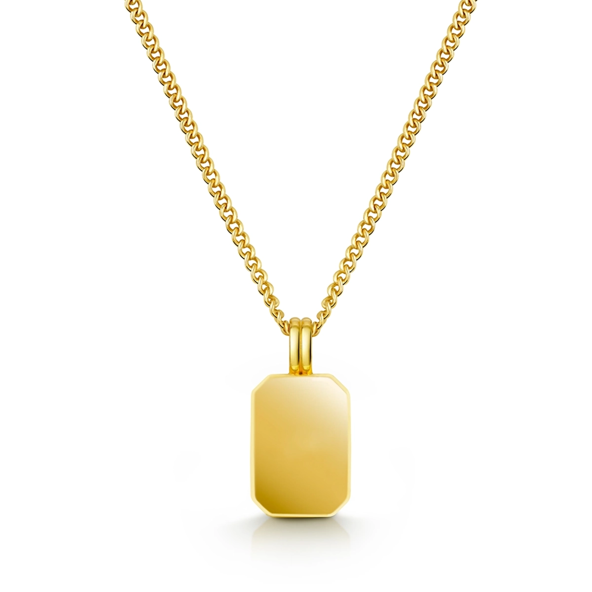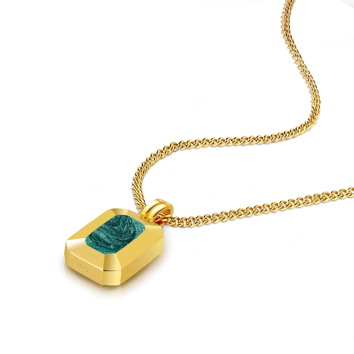 Crafted from 925 sterling silver and plated in 18k gold, this men’s memorial necklace features a bold ingot-shaped pendant with clean, geometric lines.