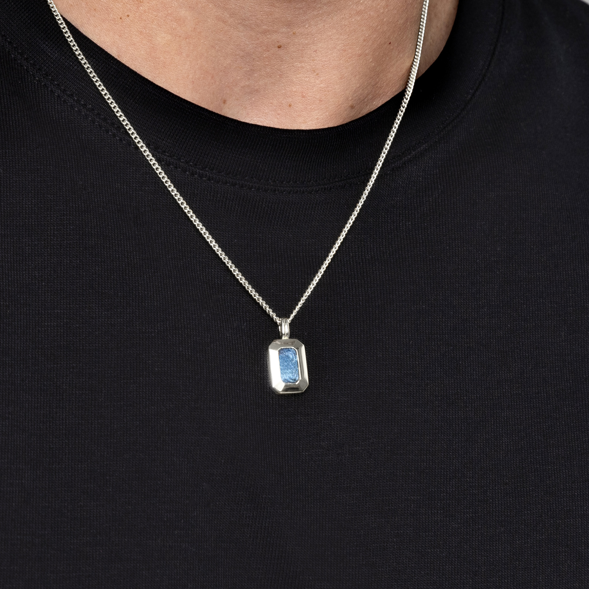 Crafted from 925 sterling silver, this men’s memorial necklace features a bold ingot-shaped pendant with clean, geometric lines.