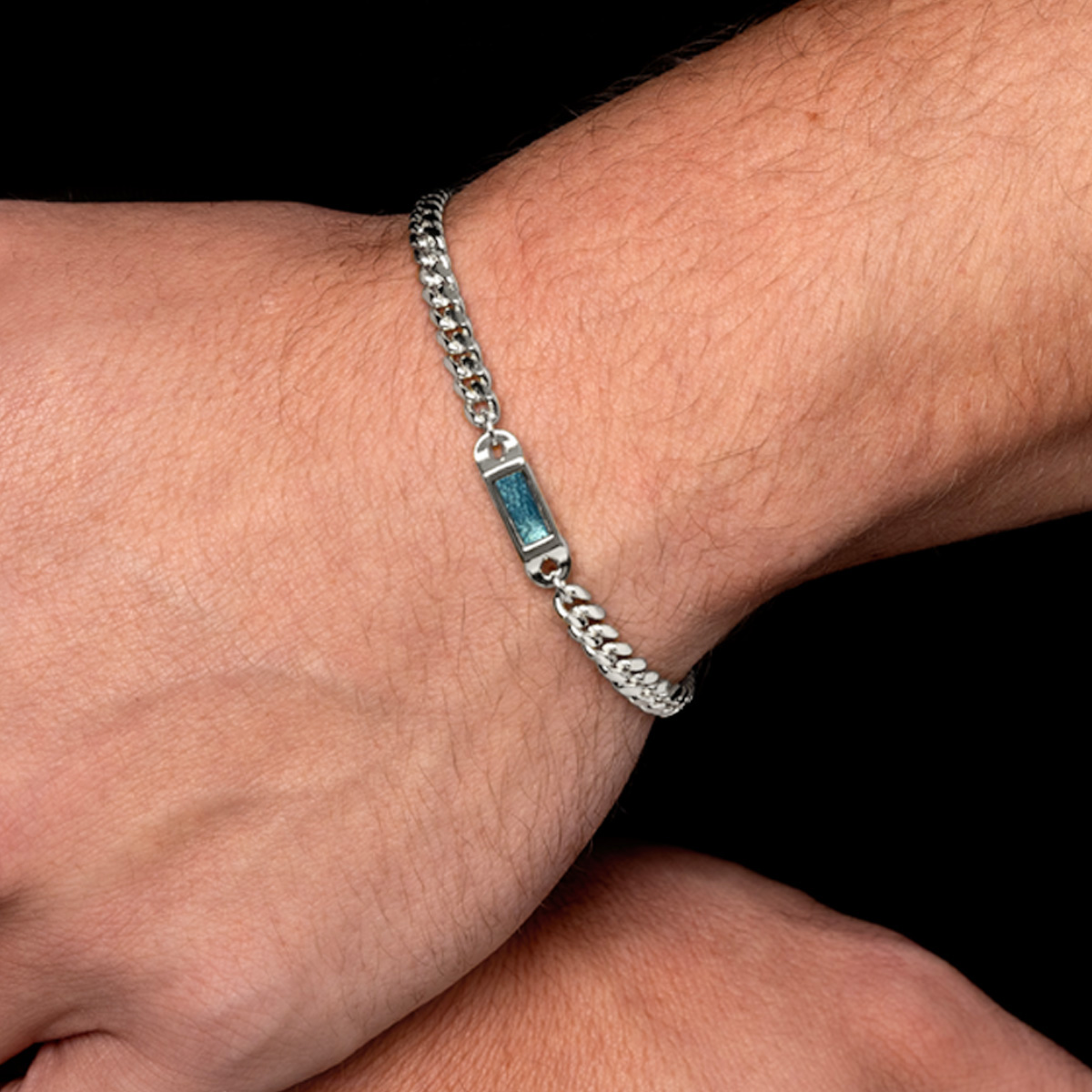 Men’s Small Capsule Ashes Resin Bracelet With Cuban Chain – Silver