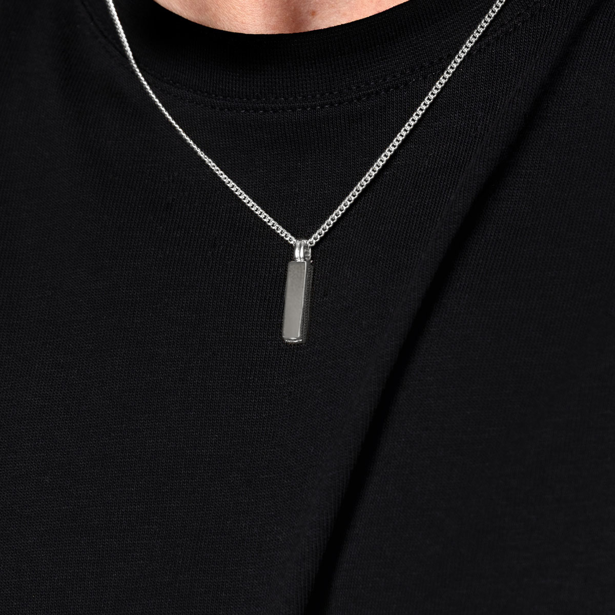 Designed with clean lines and a solid feel, this pendant necklace holds a hidden chamber for ashes inside its totem-shaped bar. Crafted from 925 sterling silver, the pendant features a subtle screw opening at its base, revealing the secure inner compartment.
