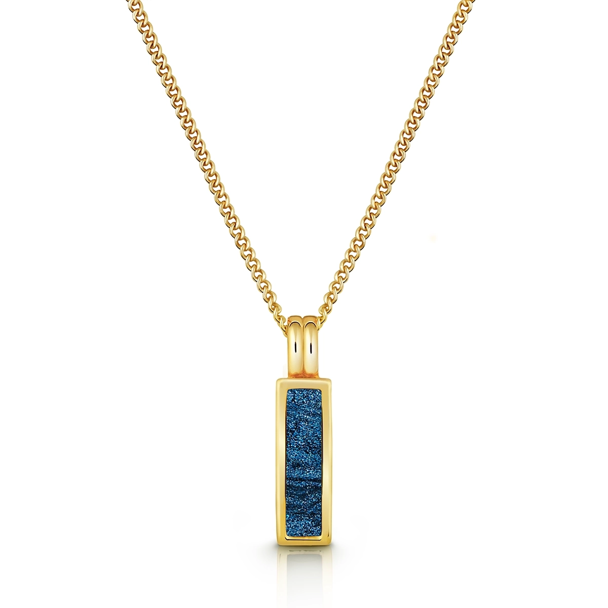 At its centre, the pendant holds a rectangle of custom resin, tinted with coloured pigment and blended with a small portion of your loved one’s ashes. Each piece is uniquely handcrafted, creating a celestial effect that is entirely one-of-a-kind.