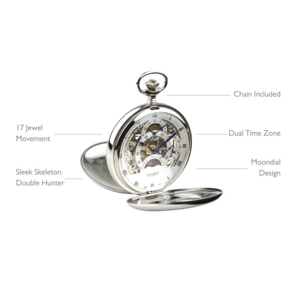 Dual Time Zone 17 Jewel Skeleton Pocket Watch – Silver