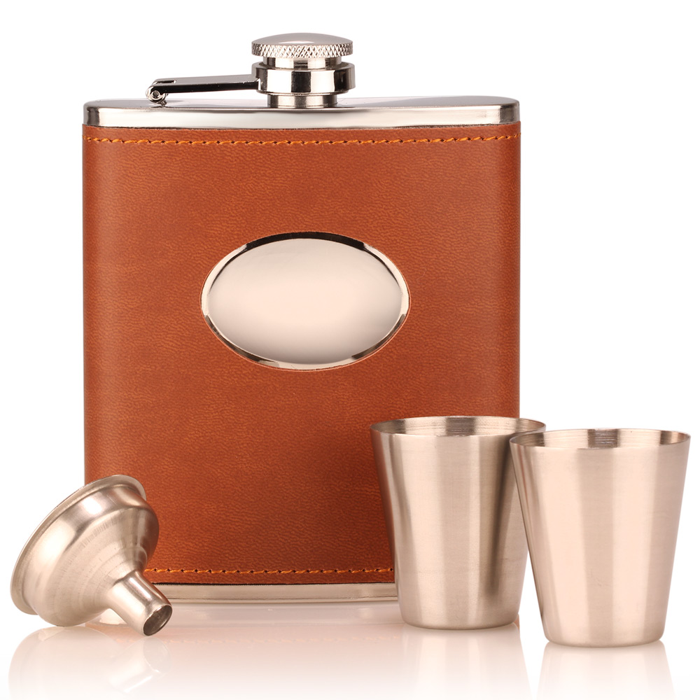 » Personalised-Brown-Leather-Hip-Flask-Gift-Set