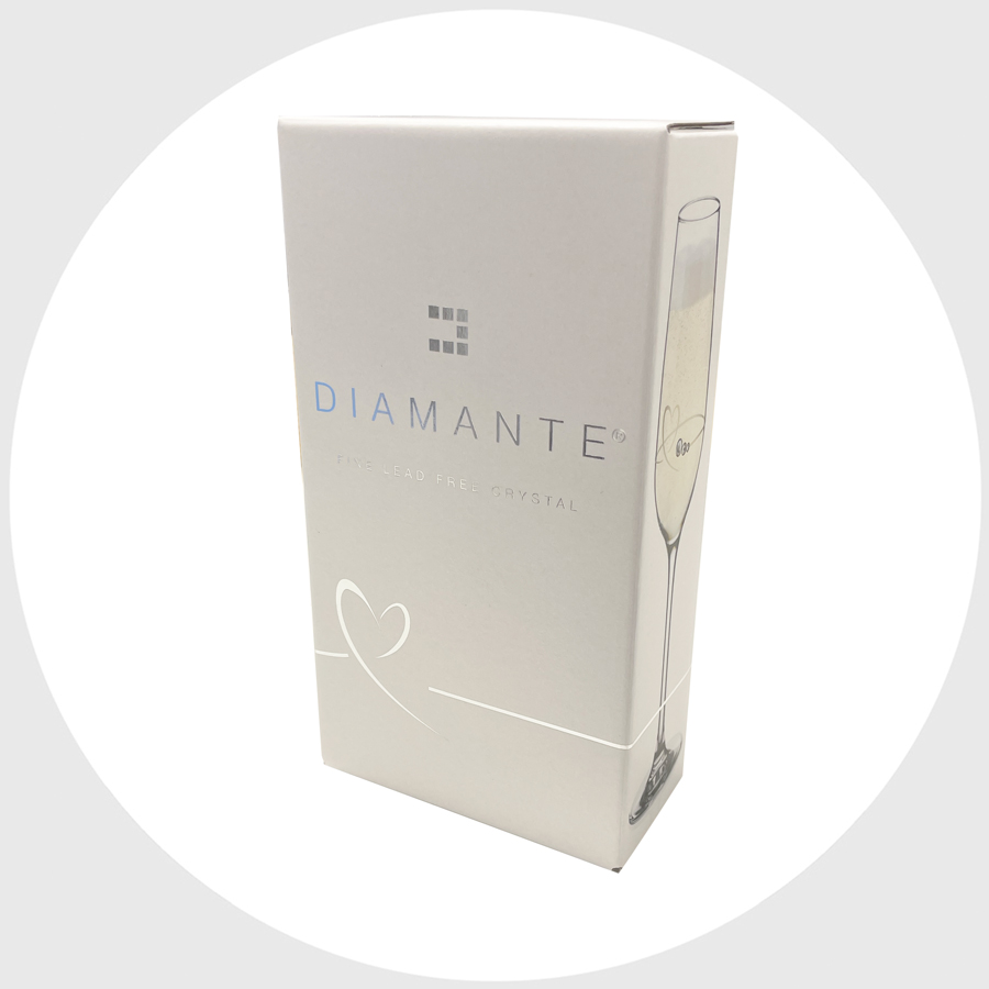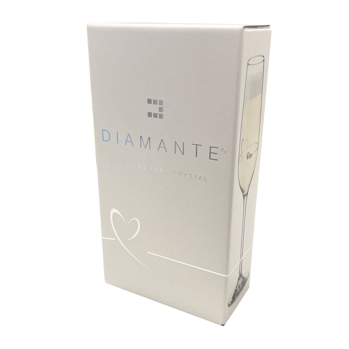 Pair of premium quality crystal glass flutes, with an elegant heart design featuring Swarovski crystals for an extra sparkle. Perfect for champagne or prosecco, this glass is ideal for romantic occasions. Precision laser engraving cuts a beautiful impression making the gift personal, and even more special.