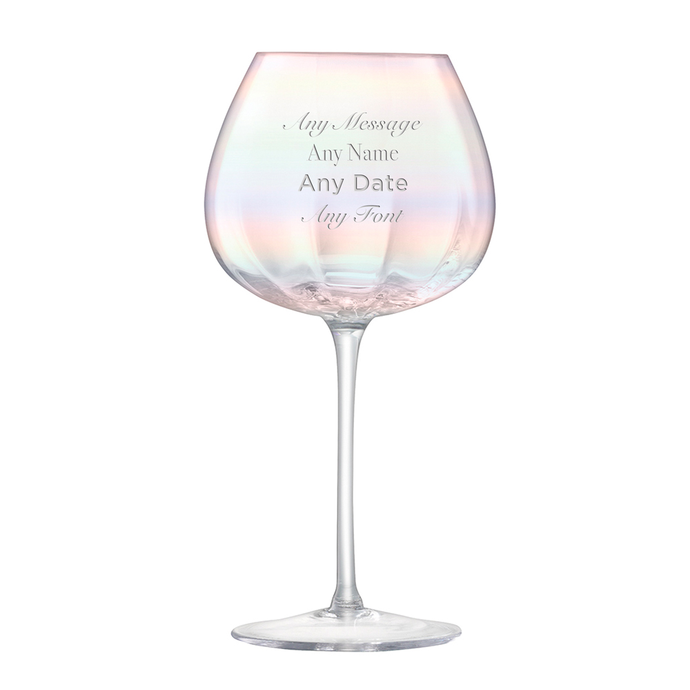 A personalised gin glass featuring iridescent lustre from LSA International. This stunning glass is a perfect gift for the modern gin drinker, great for regular use or as decorative tableware. These are mouth-blown gin glasses, hand painted and beautifully finished. The bowls have a subtly-fluted texture which fades towards the rim. Add a personalised message of your choice to make it extra special. Precision laser engraving creates a crisp impression.