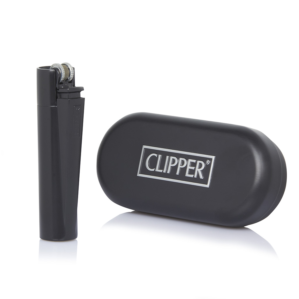 The engraved Clipper lighter in black measures 75mm high with a diameter of 16mm, and is presented in a Clipper tin box.