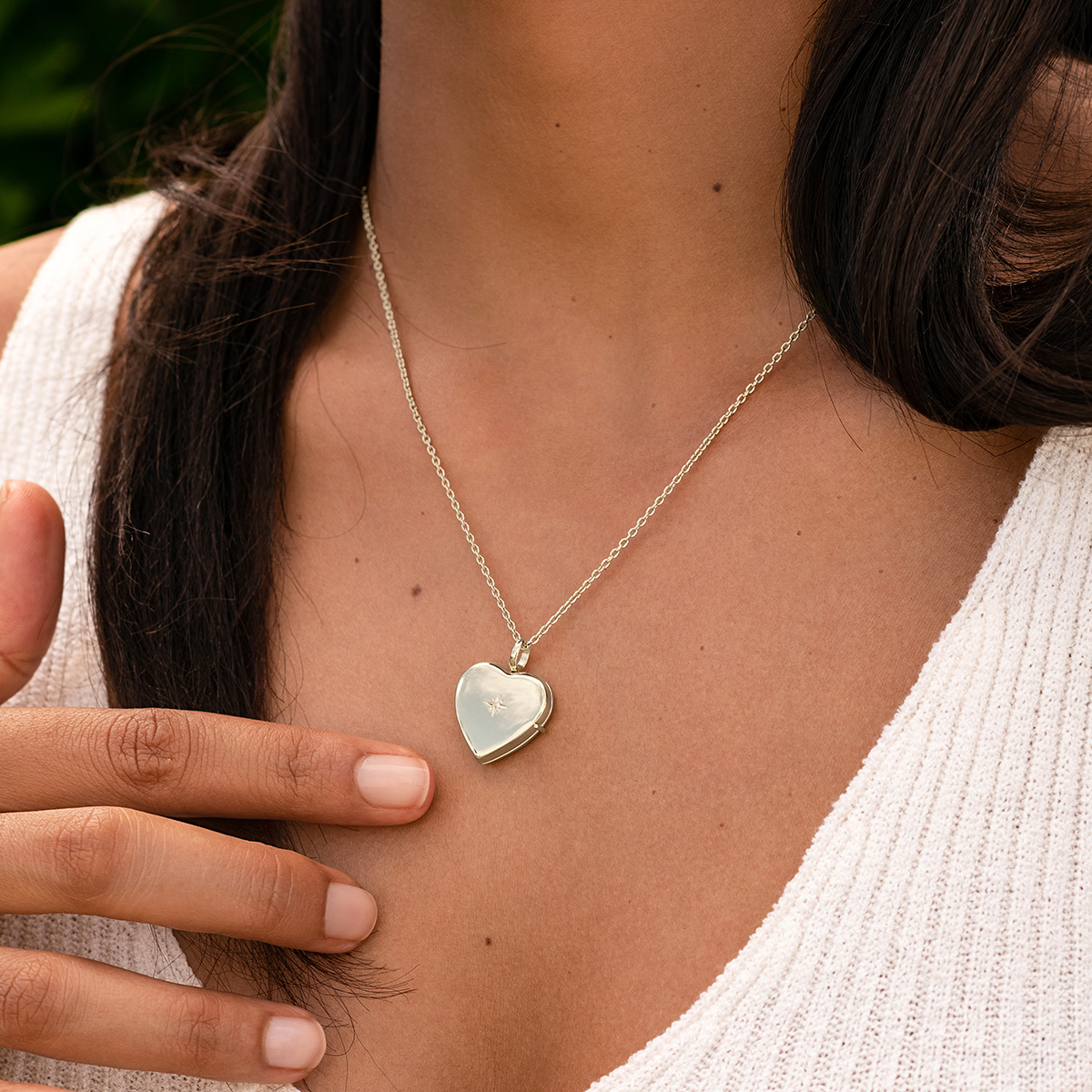 The personalised silver heart locket measures 18mm in width at the widest part, and 18mm in height.